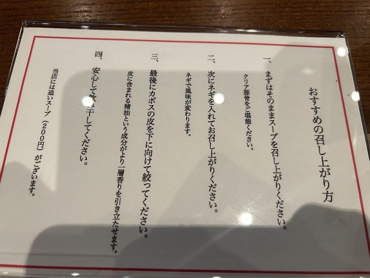 テーブルにはおすすめの食べ方が書いてます。薬味はたくさん入れたい派なのですが、初見のお店なので、おすすめに従ってみることにします。